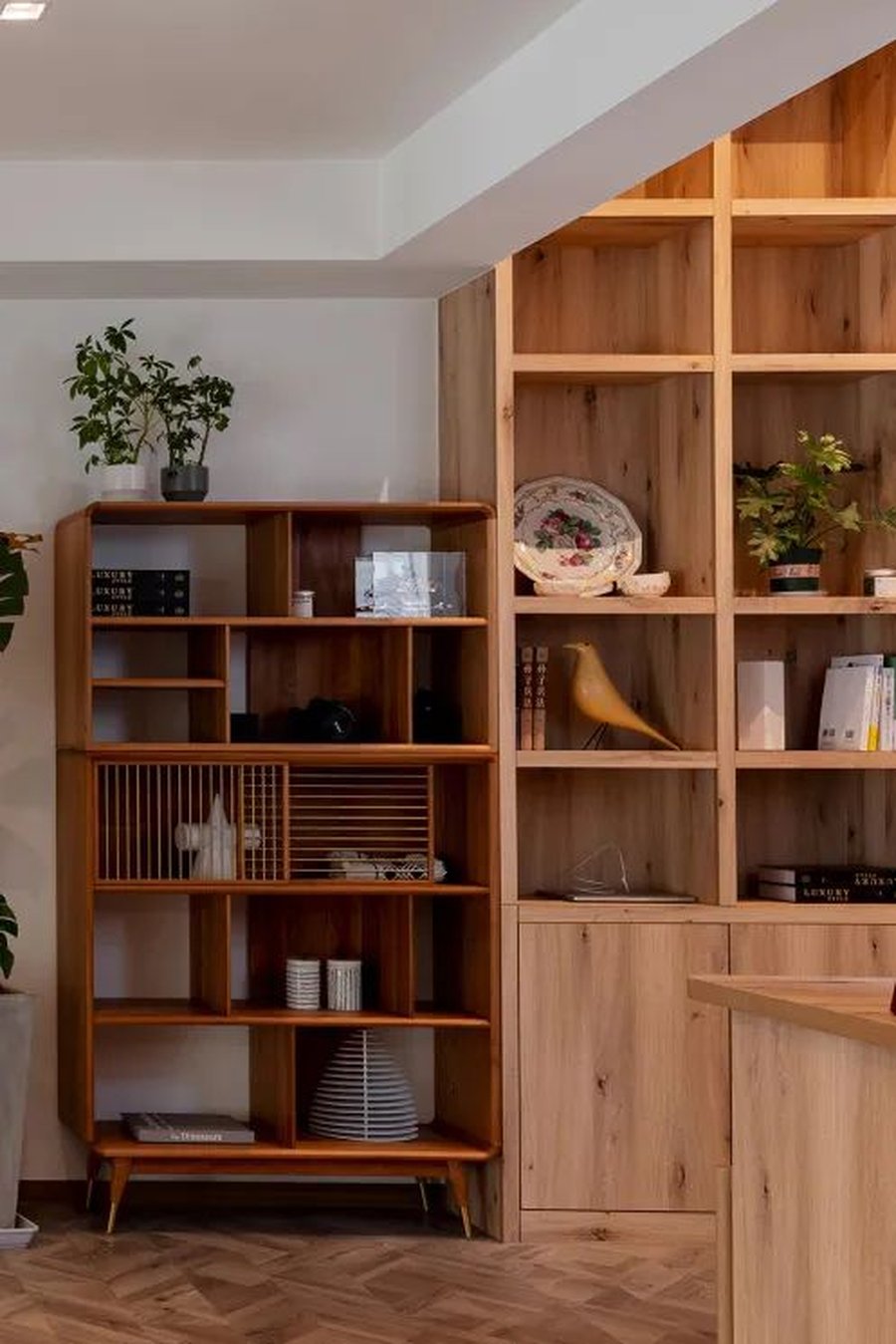 以木质家具的形式出现,或是以木地板、木饰墙面的形式出现,无论哪种形式,原木流畅的纹理和温润的质感都会给人来着内心的平静。