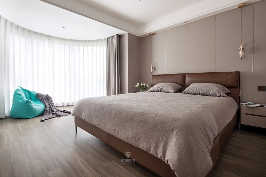 最简单的办法就是窗帘跟着软装的颜色走,可以选择和抱枕或者床品同个花色的窗帘,产生相互呼应的效果,让家居空间整体看上去显得简洁统一。