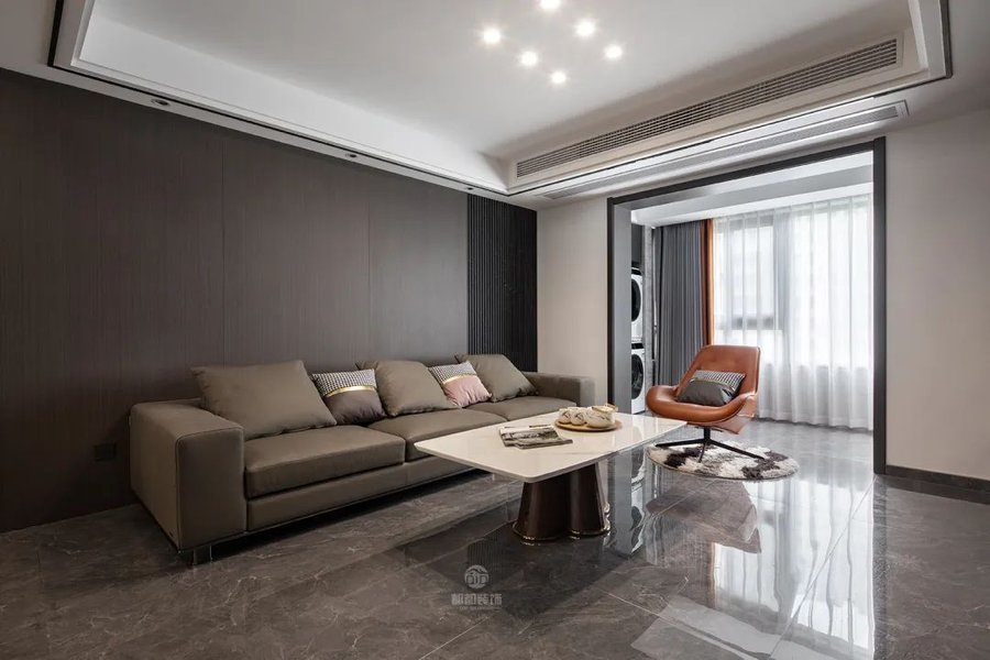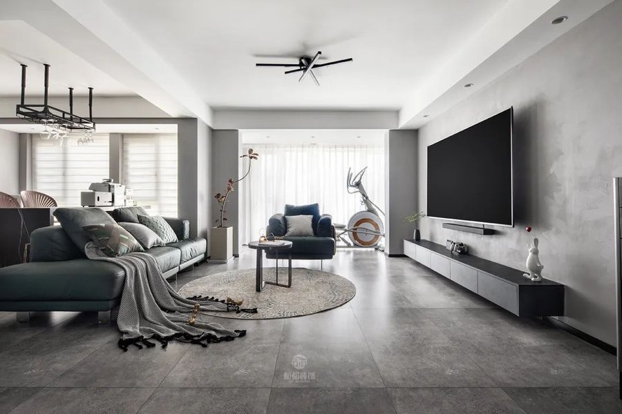 但如果对客厅的视听要求比较高,比如使用了投影幕布,或是白天对电视需求比较大,阴暗的环境会更合适一些,这时可以选择具有挡光、隔热功能的窗帘,在材质上选择厚棉麻或是涤纶就可以。