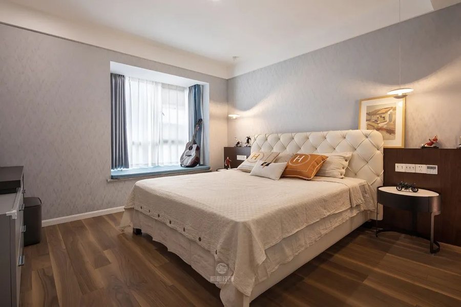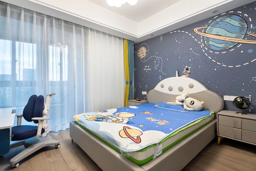 安静昏暗的环境能够保证睡眠质量,所以卧室的窗帘主要考虑到遮光和隔音的效果,选择棉麻或聚酯纤维类的窗帘就可以。