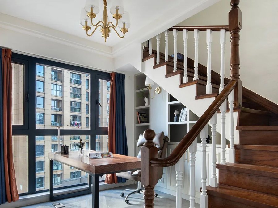 书房作为工作学习的地方,光线不能太刺眼,但也不能太暗。百叶帘就是不错的选择,避免光线直接射入,同时也不会过度遮挡自然光,为室内营造一种柔和的自然光效果。