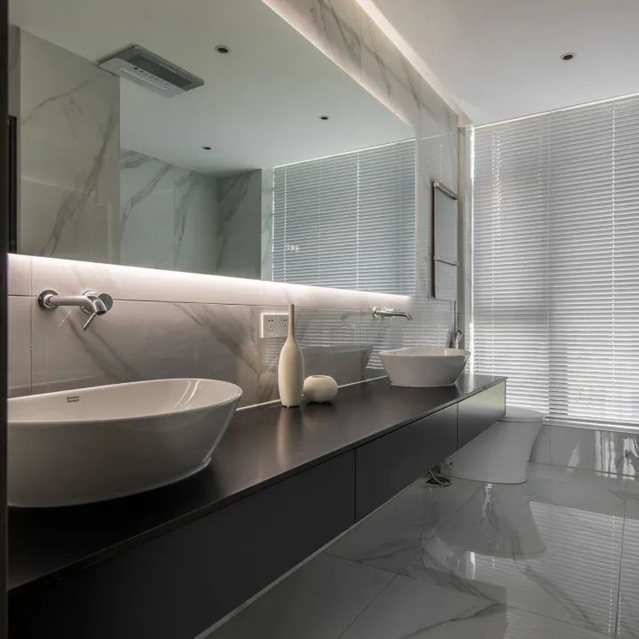 家里人多的话,早上起床很容易会在厕所的使用权上产生矛盾。不妨把洗手台外置,早上卫生间使用高峰期时提升使用效率!