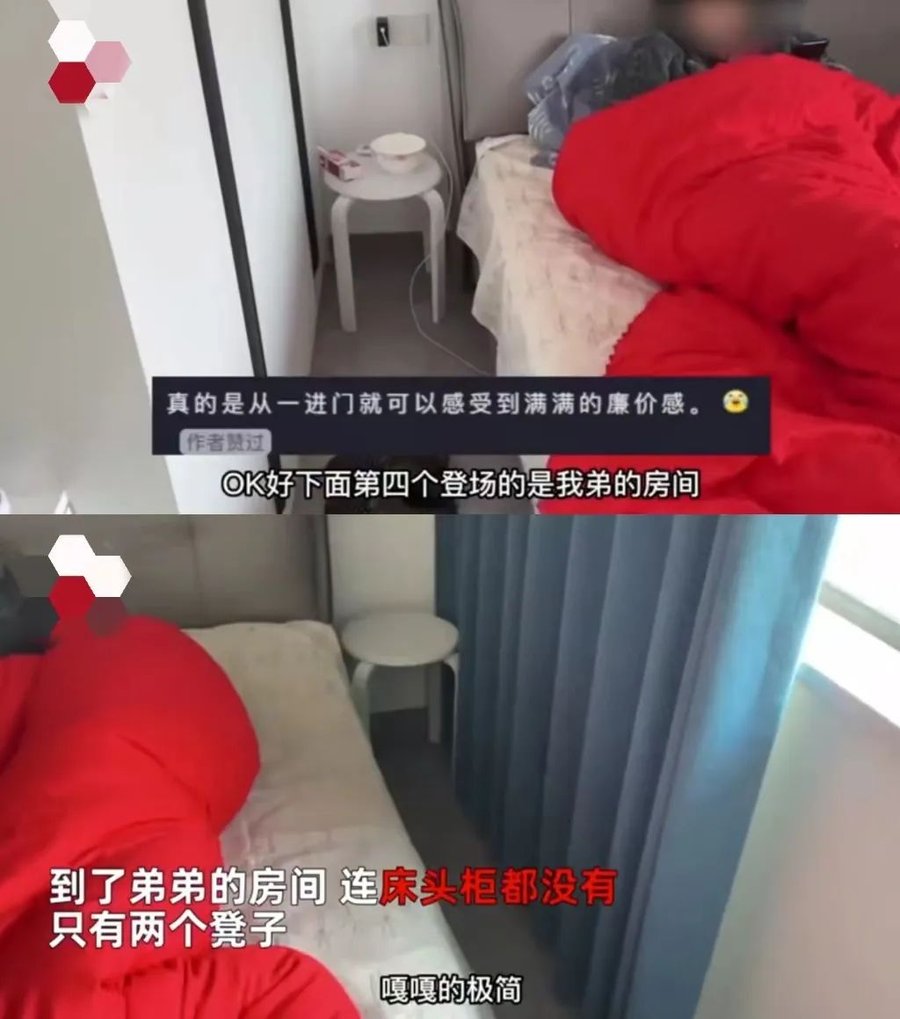 另一个卧室的设计更是离谱,柜子全部是半截柜,仿佛是放错了位置的厨房。