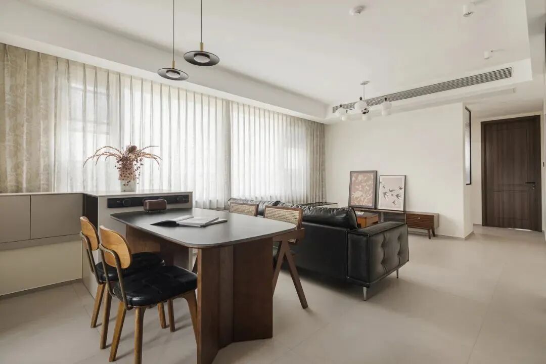 从视觉上看,餐岛一体化消除了传统隔断带来的空间分割感,使整个空间显得更加开阔和通透。