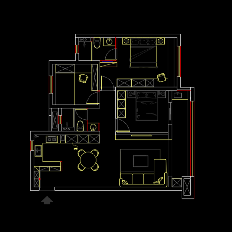 但也需要注意在阅读区、餐桌、橱柜下方增设局部重点照明,营造光影层次。